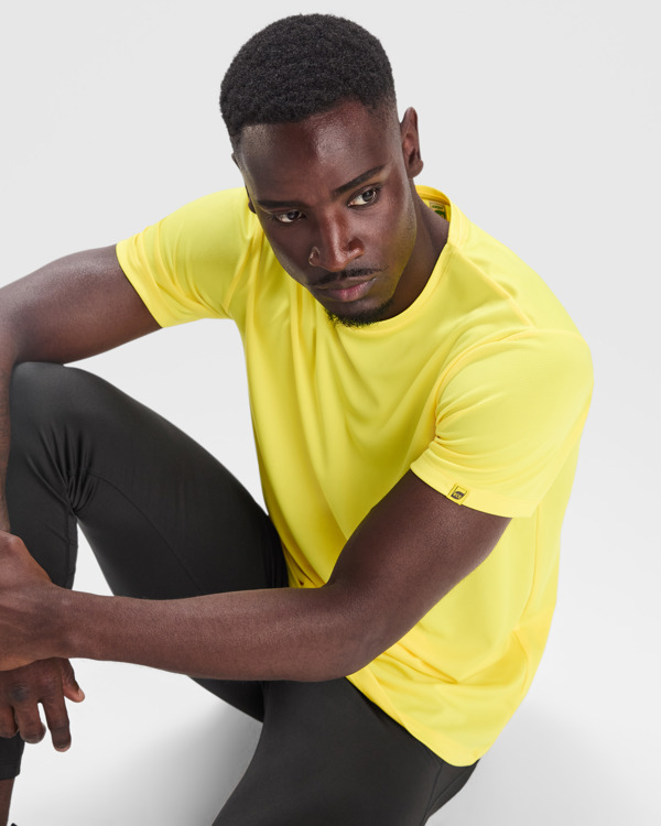 Camiseta técnica de manga corta transpirable. Confeccionada en poliéster reciclado. Roly Control Dry. Cuello redondo y cubrecosturas del mismo tejido al tono. Etiqueta tejida eco. Certificado GRS.